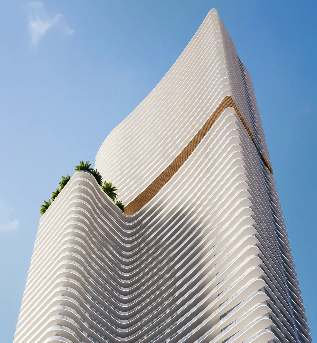 Un símbolo de prestigio en Miami Worldcenter: 210 metros de arquitectura inspirada en las olas, creada para ganar valor con el tiempo.